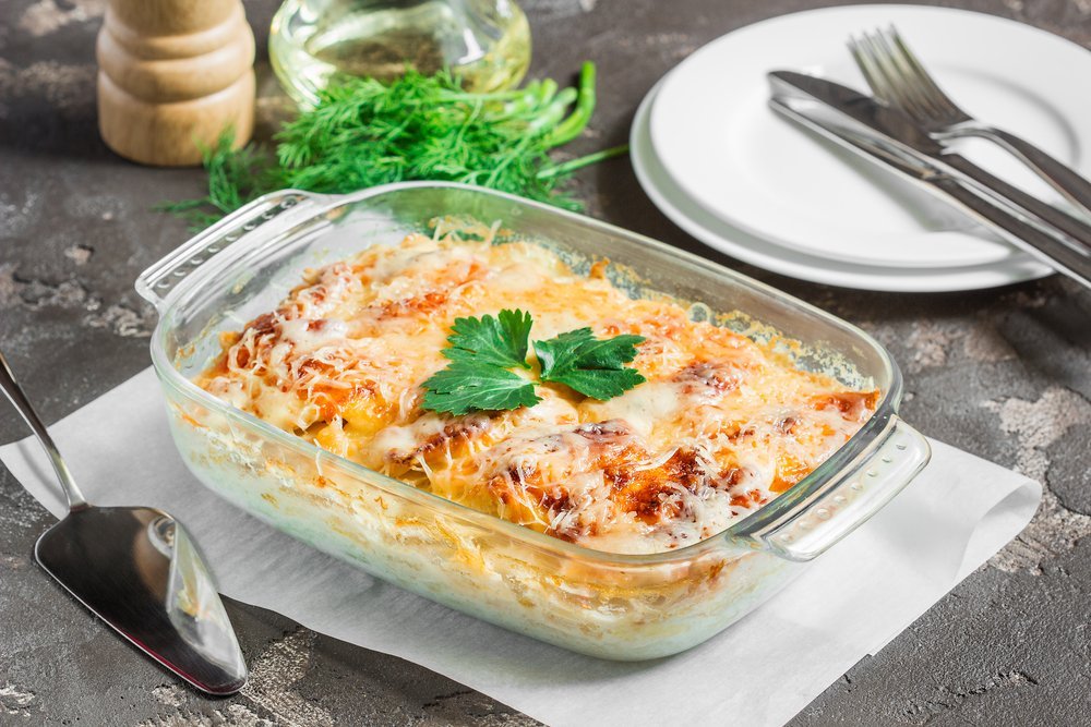 Yapılışı: Önce patatesleri kabuklu yıkayın, ardından kabuklarını soyun, daha sonra yuvarlak dilimler şeklinde doğrayın. Fırın kabına yağlı fırın kağıdını koyun. Patatesleri derin bir kapta tuzlayıp karıştırın, sonra fırın kabına yerleştirin. Diğer tarafta derin bir tavada tereyağını eritin, ardından unu koyun ve kavurmaya başlayın, un kavrulunca sütü ekleyin, karabiberi ekleyin, az tuz ekleyin ve sos kıvamına gelinceye kadar pişirin, son kıvamı tutturmadan, iki dal fesleğeni ellerinizle küçük küçük koparın ve sosun içine katın, biraz da bu şekilde pişirdikten sonra fırın kabında bulunan patateslerinizin üzerine dökün ve son olarak dilim kaşarı üzerini örtecek şekilde dizin. 180-200 derece,25 ile 35 dk arasında pişirin.